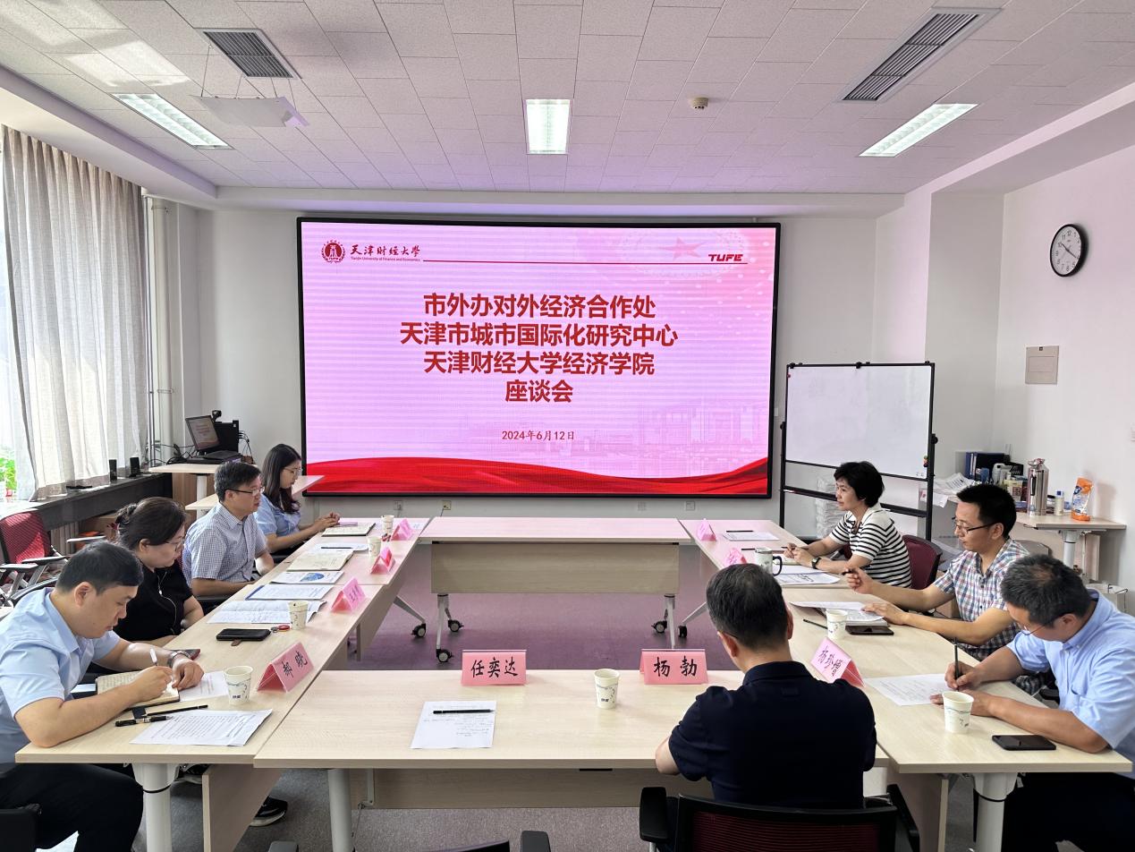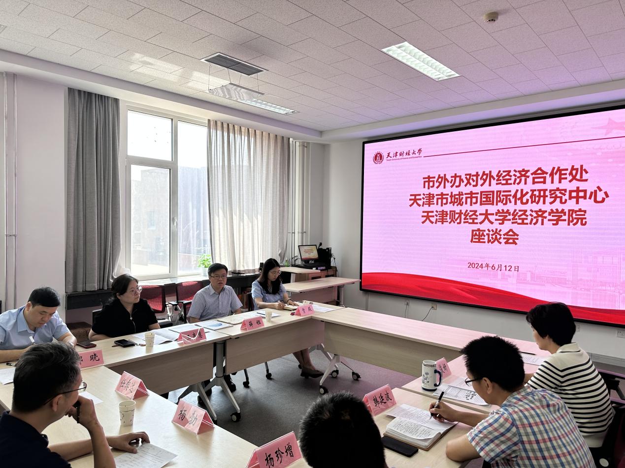 的学科发展和人才培养情况,天津自贸区研究院的研究特色以及在建言献策、服务地方经济方面取得的一系列成果。王彦慧副处长介绍了对外经济合作处的成立背景、运作机制和工作目标,并详细介绍了拥有的咨政平台,探讨了加强双方合作、提高建言献策水平、更好发挥外事工作服务经济发展的有效途径。薛钰副主任介绍了天津市城市国际化研究中心的情况,以及相应的政策研究合作前景。随后三方就具体的合作领域、合作机制等进行了深度交流和探讨。