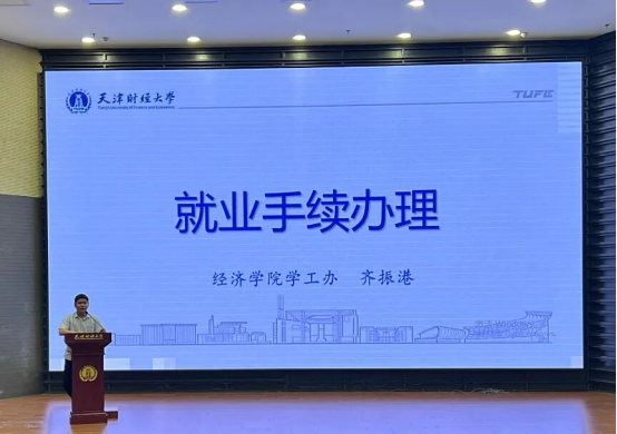 齐俊妍院长围绕“专业赋能就业,规划点亮前程”的主题,结合专业特色,为同学们分析了就业形势,指出同学们即将进入的社会充满了机遇和挑战,大家要积极去把握。希望同学们审时度势、脚踏实地,始终保持经济人的理性,保持终生学习的意识,不断提高与时代发展和事业要求相适应的素质和能力;对于考研考公的同学,要提前明确目标、精准定位,在备考中兼顾知识积累与职业素养提升,同时叮嘱大家重视毕业论文与学业收尾工作,为大学生涯画上圆满句号。
