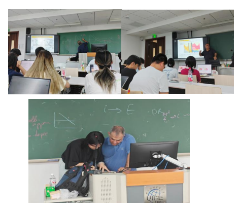 的8名学生均参与了《国际金融:世界经济与汇率》课程的学习,该课程由伦敦国王学院的Georgios Chortareas教授授课,课堂上,同学们认真听讲、专注思考、紧跟教授思路积极互动;课后,针对不懂的知识点,主动与教授进行探讨,力求精准掌握相关内容。